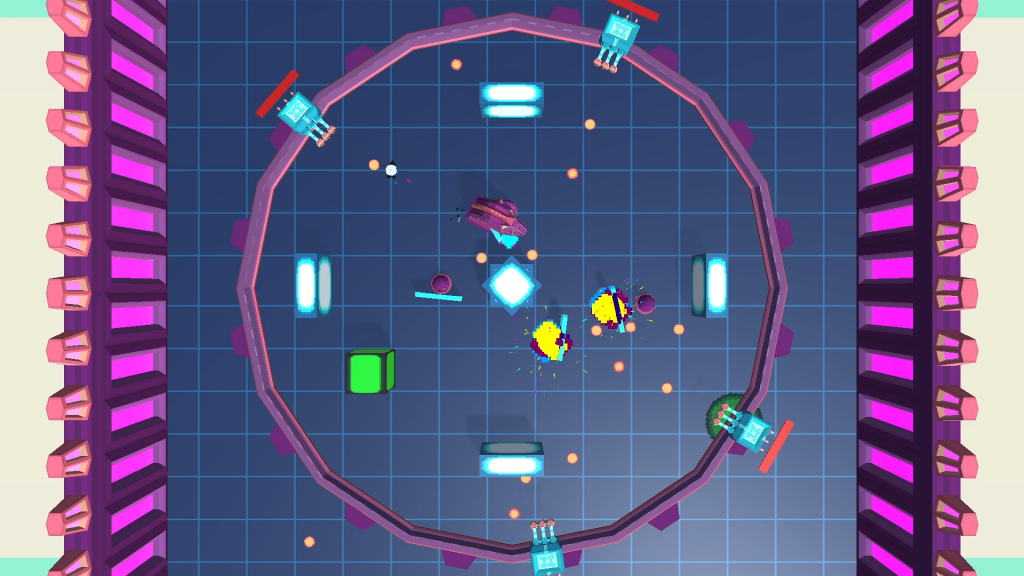 To put a twist on the bullet hell genre with the given theme, we designed a bullet ricochet mechanic that forces the player to create their own bullet hell as they shoot down enemy units. Combining shield-bearing enemies that can ricochet bullets with uniquely placed deflectors on each level, the player will have to focus on shooting down the enemies without shooting down their own turrets.